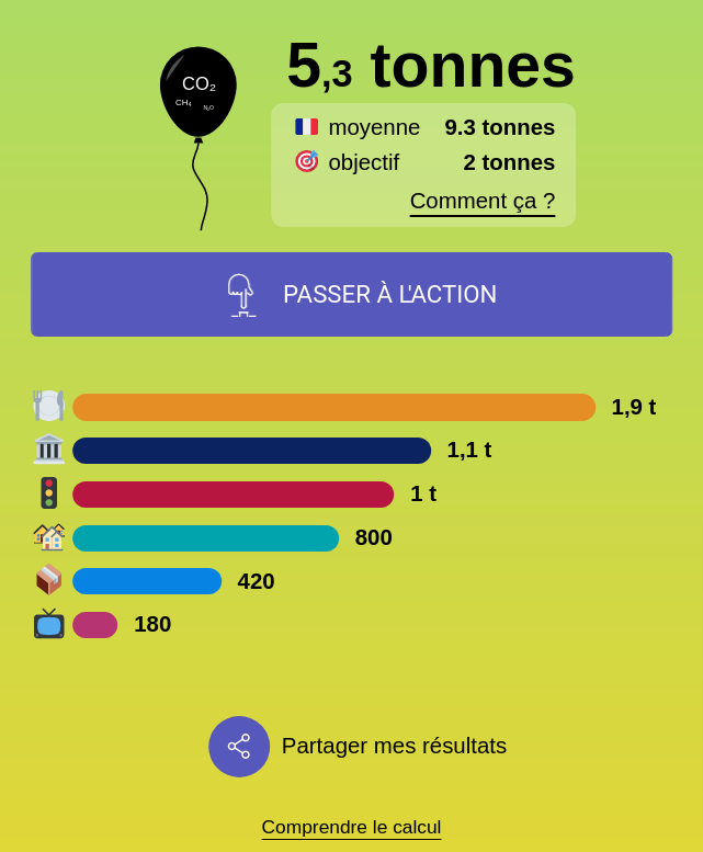 C’est en-dessous de la moyenne française, mais il faut garder à l’esprit que l’objectif à atteindre est de 2 tonnes (voir même 1.6t) pour avoir une chance de rester en-dessous des 2°C d’augmentation de température moyenne et éviter les effets dévastateurs.