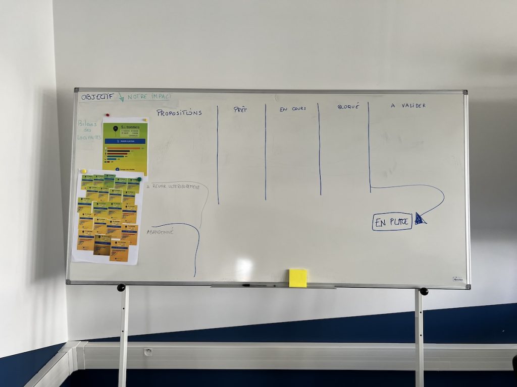 Comme déjà annoncé dans une dépêche, vous pouvez ajouter vos idées pour trouver des solutions afin de limiter l’impact carbone à Logipro, mais certains se demande où se trouve se « vrai » tableau, il est dans la salle de réunion comme cette photo peut en témoigner. 👇
